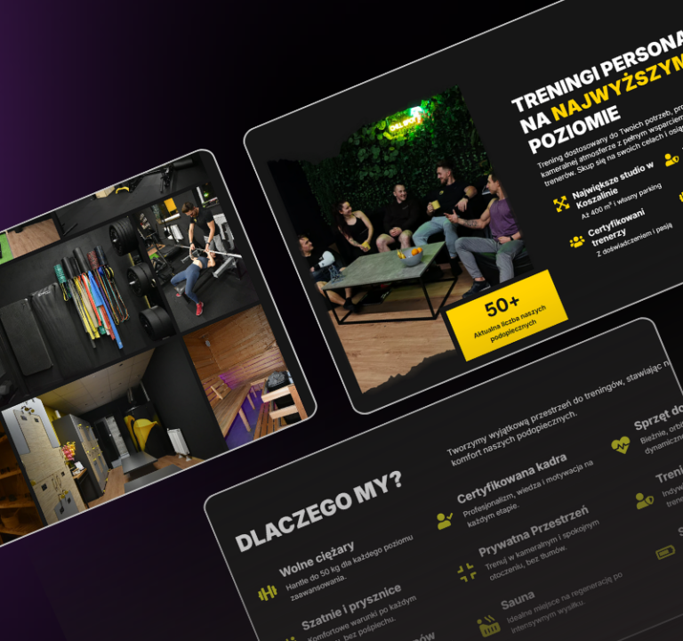 Każda realizacja obejmuje kompleksowy proces: od strategii i struktury strony, przez treści, layout, grafiki i wersję mobilną, po wdrożenie, analitykę, szkolenie i opiekę po publikacji.